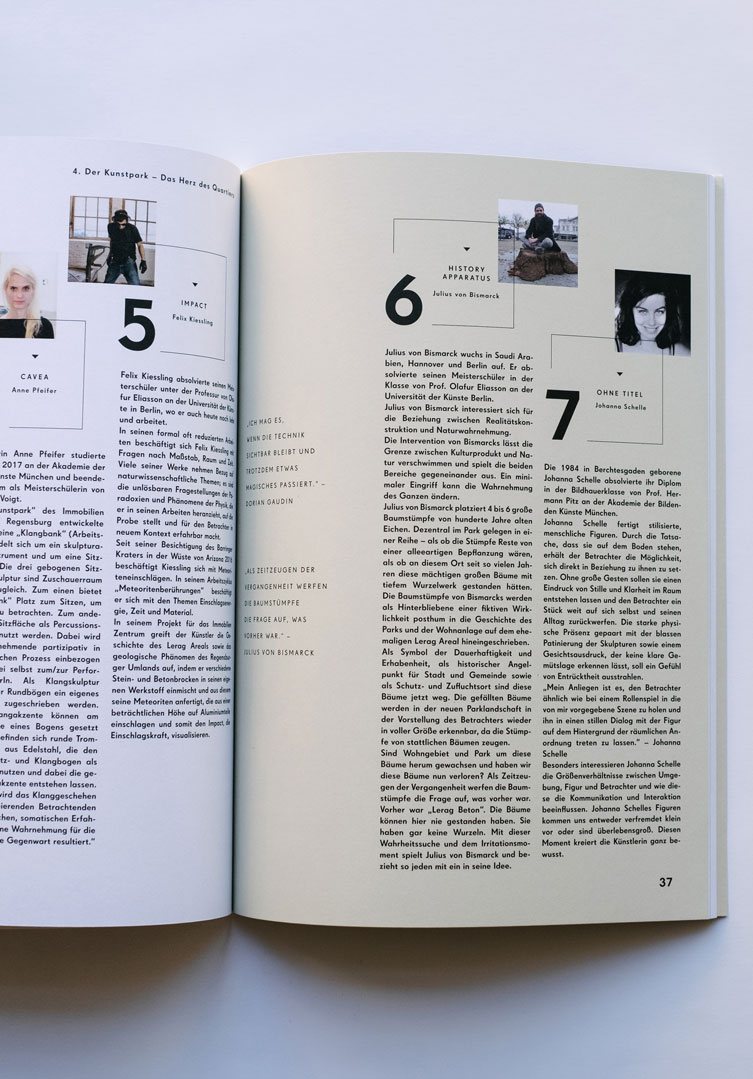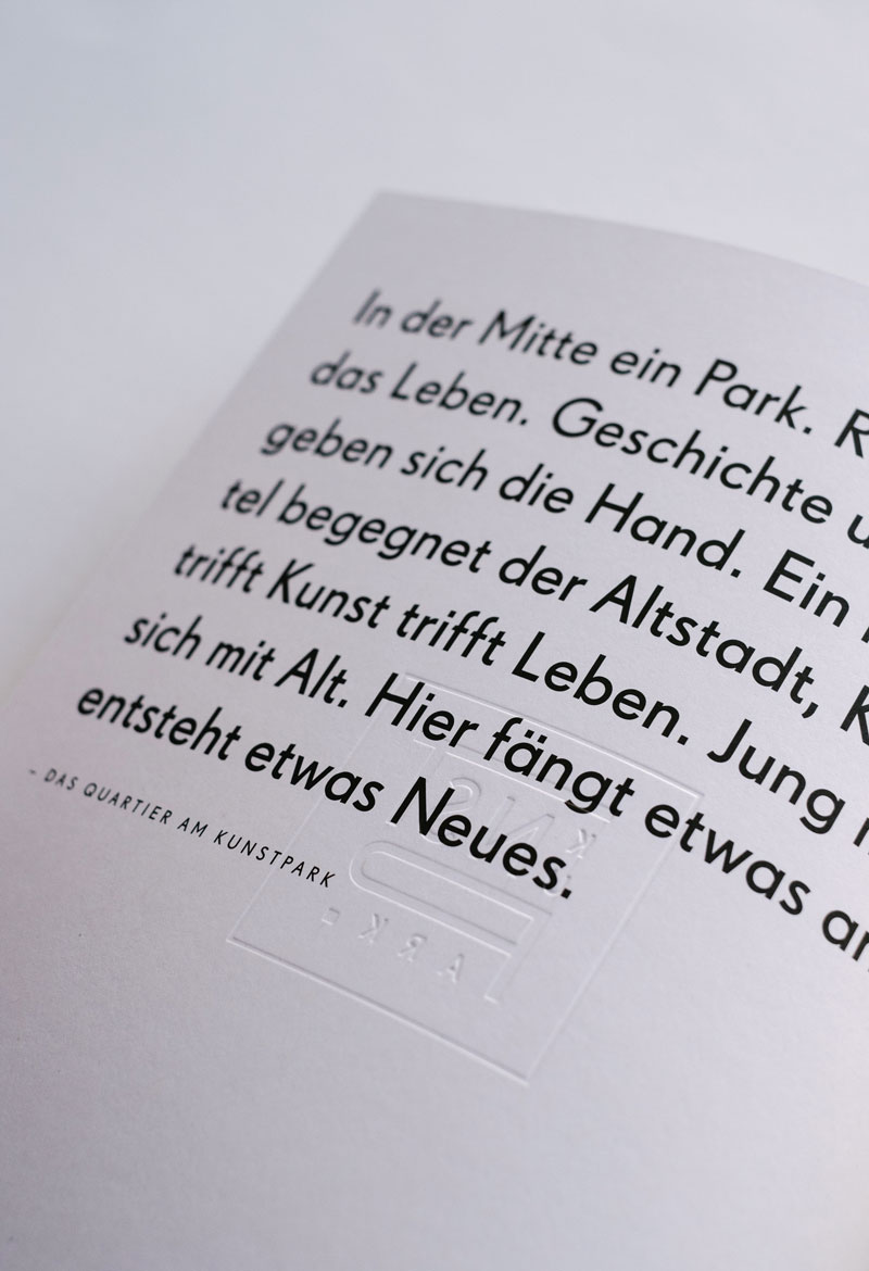 In der Mitte ein Park. Rundherum ist das Leben: Im Regensburger Osten wird eine stillgelegte Betonfabrik zu einem grünen Wohnviertel umgebaut. Geschichte und Moderne geben sich die Hand. Ein neues Viertel begegnet der Altstadt, Konzept trifft Leben. Jung mischt sich mit Alt. Hier fängt etwas an, hier entsteht etwas Neues. Wir füllten das Quartier am Kunstpark schon vor seinem Bau mit Leben, Branding und Website spiegeln das einzigartige Konzept von Wohnen um einen Park mit moderner Kunst herum wider.